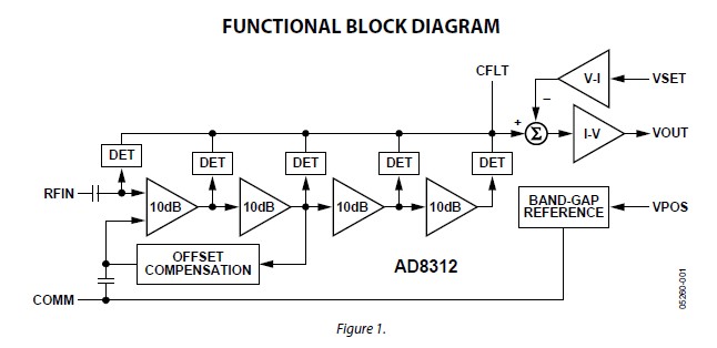 The AD8312ACBZ-P7 is a complete, low cost subsystem for the measurement of RF signals in the frequency range of 50 MHz to 3.5 GHz. It has a typical dynamic range of 45 dB and is intended for use in a wide variety of cellular handsets and other wireless devices. The AD8312ACBZ-P7 provides a wider dynamic range and better accuracy than possible using discrete diode detectors. In particular, its temperature stability is excellent over the full operating range of - 40°C to +85°C. Applications are (1)Cellular handsets (GSM, CDMA, WCDMA); (2)RSSI and TSSI for wireless terminal devices; (3)Transmitter power measurement.