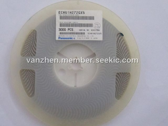 ECHU1H272GX5 specifications: (1)Category temp. range(Including temperature-rise on unit surface): -55 ℃ to + 125 ℃; (2)Rated voltage: 10 VDC, 16 VDC, 50 VDC(50 VDC: 0.12 μF or more: Derating or rated voltage by 1.25 %/℃ at more than 105 ℃); (3)Capacitance range: 0.00010 μF to 0.22 μF (E12); (4)Capacitance tolerance: ±2 %(G), ±5 %(J); (5)Withstand voltage: Between terminals: Rated volt. (VDC)×150% 60s; (6)Dissipation factor (tanδ): tanδ≦0.6 % (20 ℃, 1 kHz); (7)Insulation resistance (IR): 10 VDC:IR≧3000 MΩ (20 ℃, 10 VDC, 60 s); 16 VDC:IR≧3000 MΩ (20 ℃, 10 VDC, 60 s); 50 VDC: IR≧3000 MΩ (20 ℃, 50 VDC, 60 s); (8)Soldering conditions: Reflow soldering: 260 ℃ max. and 95 sec max. at more than 220 ℃ (Temp. at cap. surface).