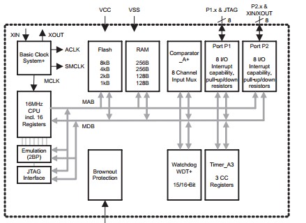 ![]() 16-bit Microcontrollers (MCU) 16-bit Ult-Lo-Pwr 4kB Flash 256B RAM |