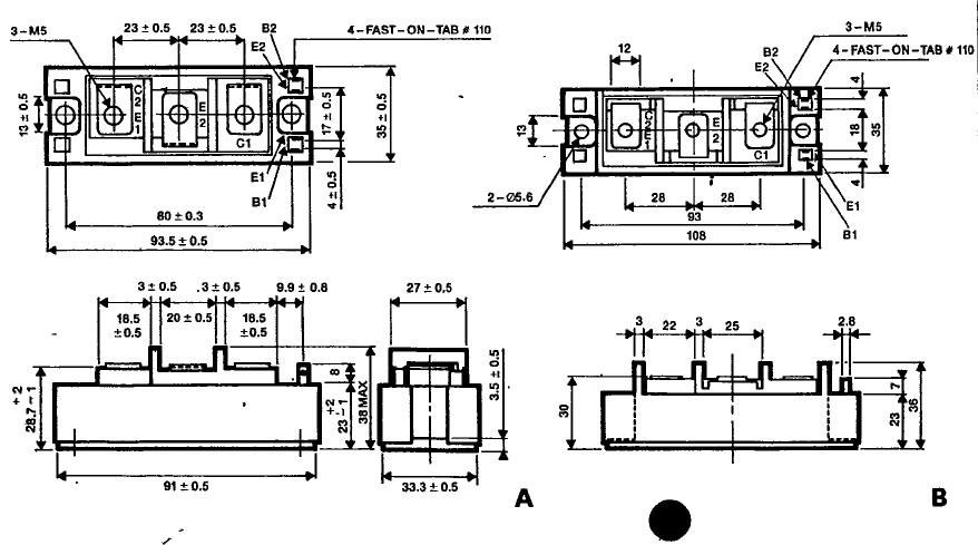 MG150Q2YS11 features: (1)Electrodes are isolated from the heat sink (2500V AC); (2)High DC current gain; (3)Low saturation voltage(2 to 2.5V maximum); (4)Wide safe operating area.